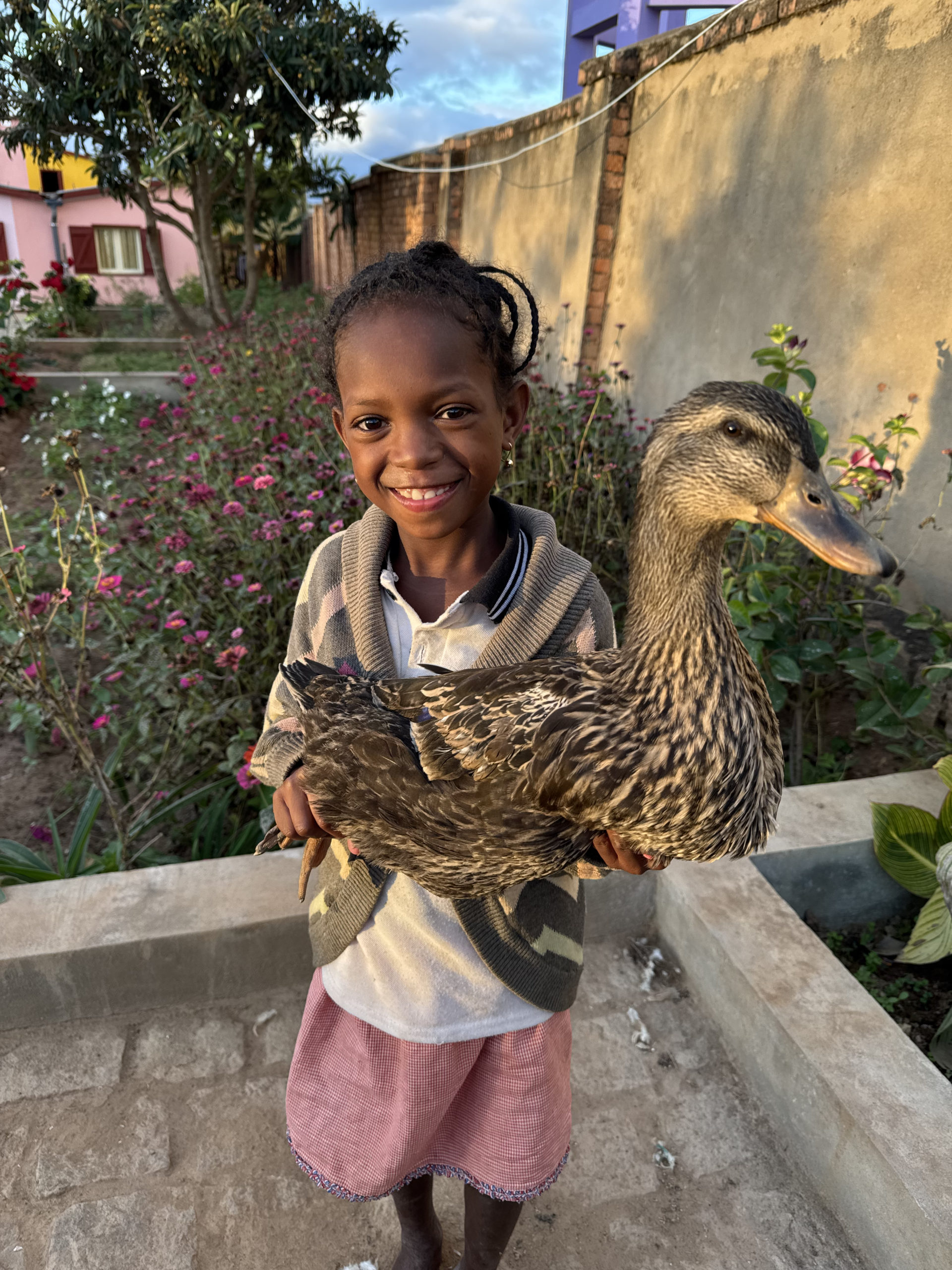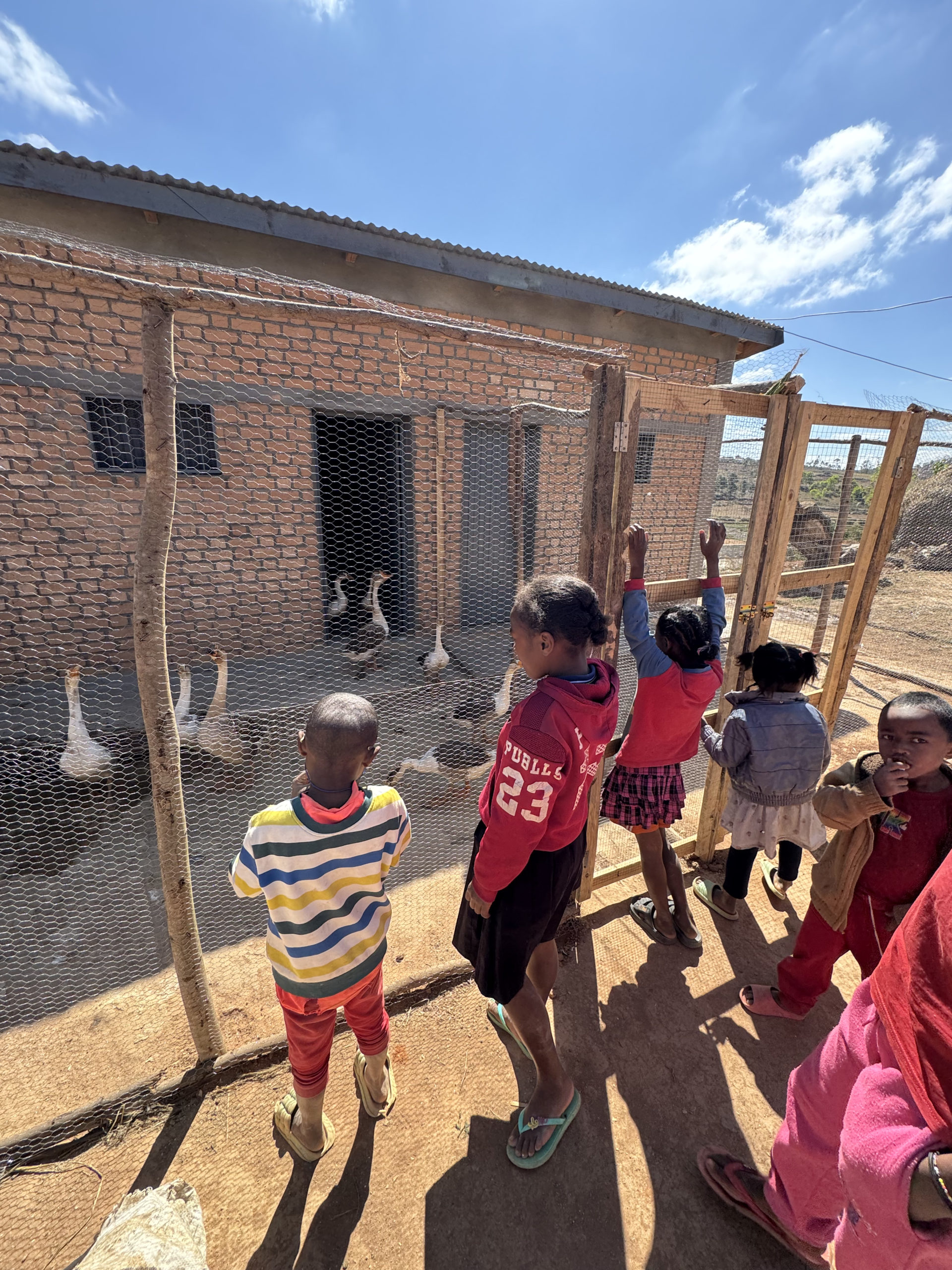 To reach the second goal, the one about food self-sufficiency, we bought three hectares of uncultivated land that borders the village. Here, we are building the “Ganagana” happy farm, a term that in Malagasy means “duck”. After having dug wells, we started to plant mango, papaya and banana trees, and then also other crops and a small paddy field. In addition to agriculture, there is also livestock, which includes hens, pigs, ducks, zebus and cows.