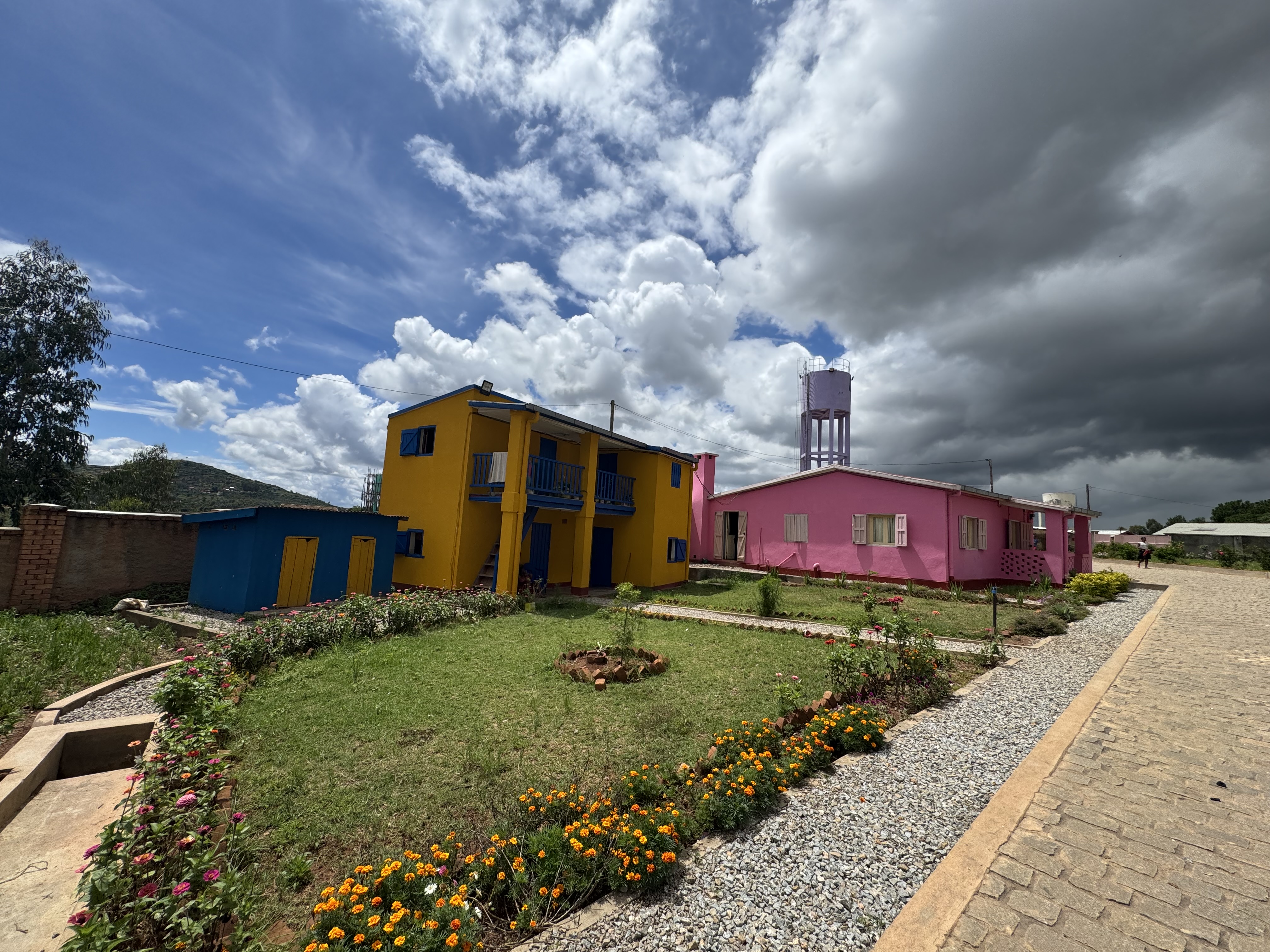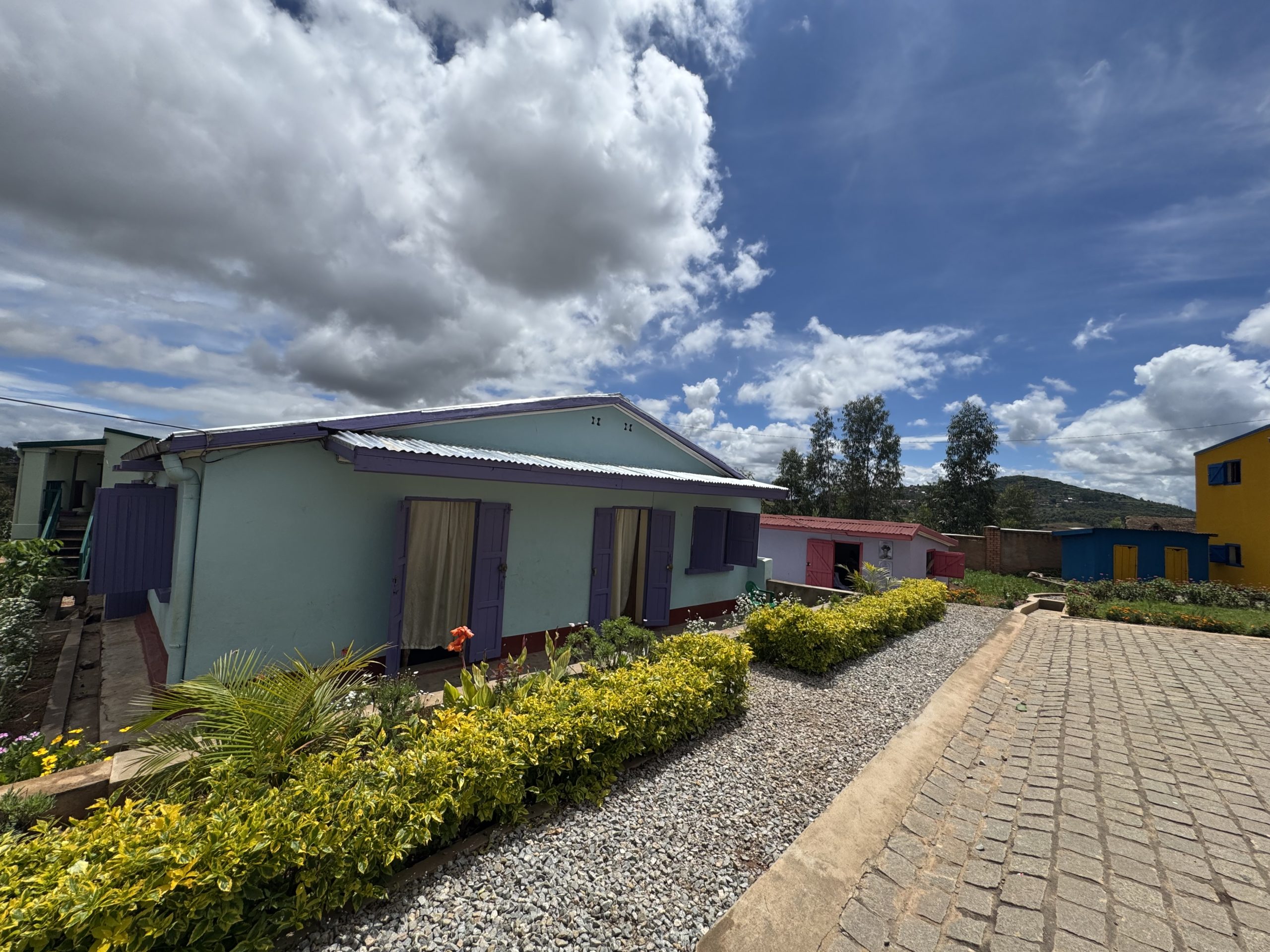 It is a small village with 11 cottages, a large dining hall, a bakery, two drinking water wells, two sports fields, and a large garden full of flowers and medicinal herbs. To date, we have taken in 100 children, the youngest being a few weeks old, the oldest 17 years old. They all go to school. And in the afternoon, the older ones take computer, music, and Italian classes. We also host 7 young mothers who are victims of sexual and domestic violence.