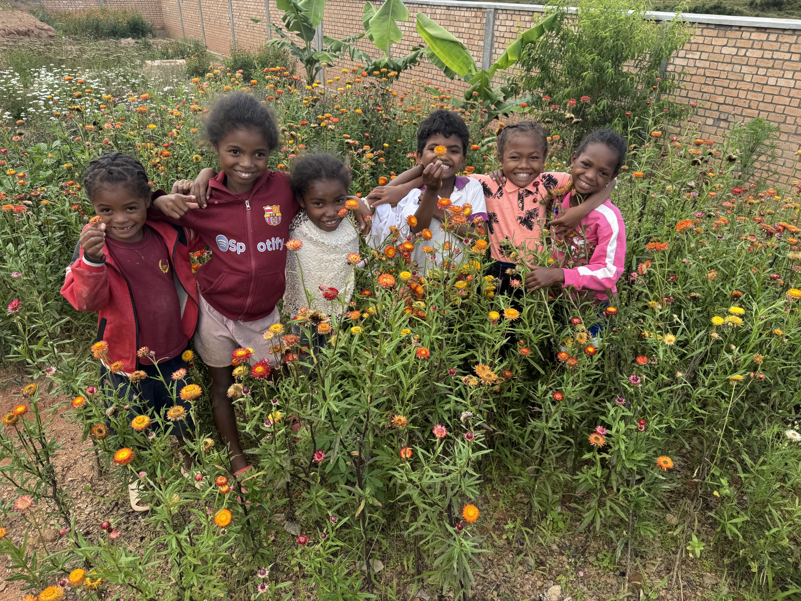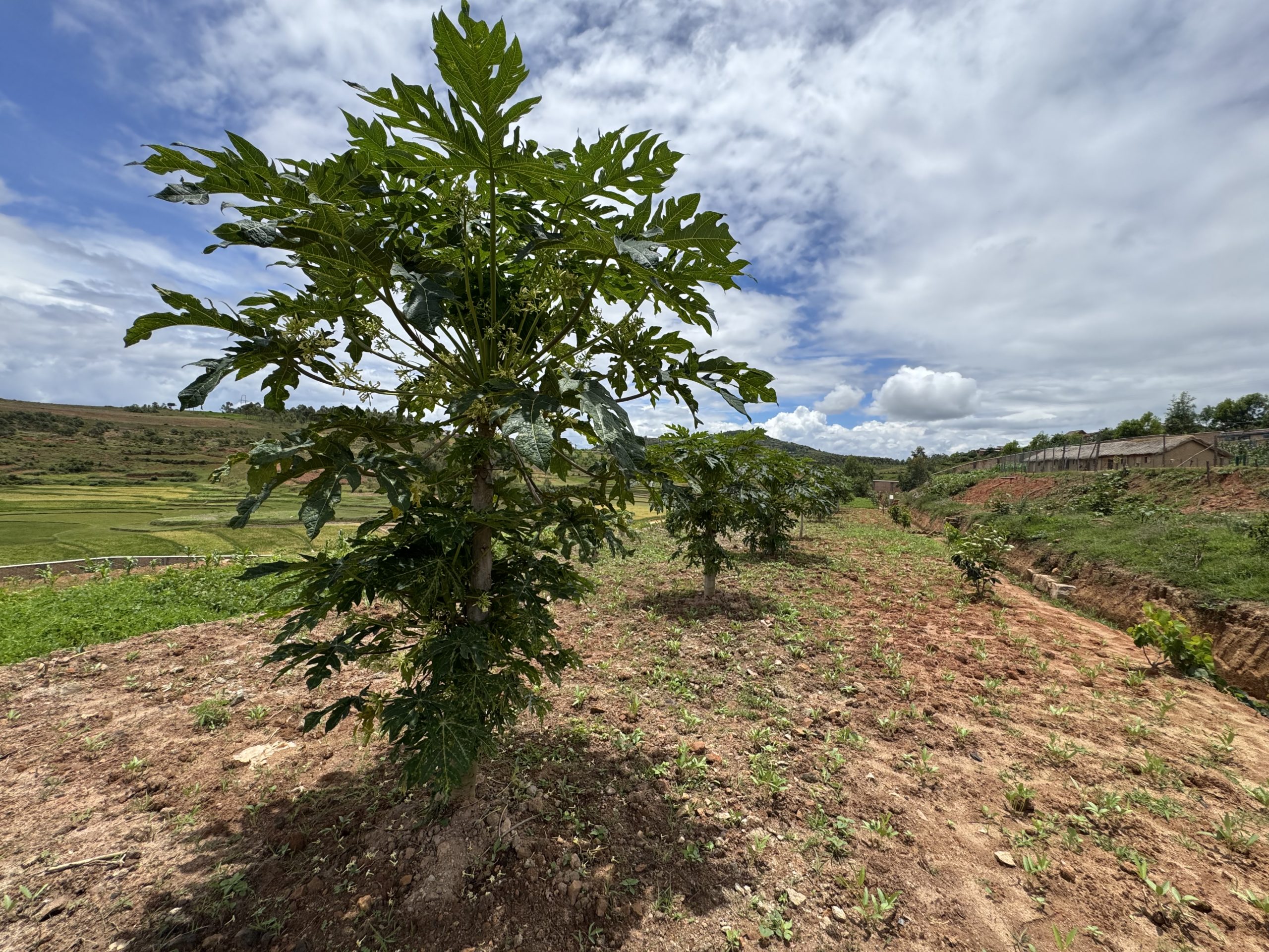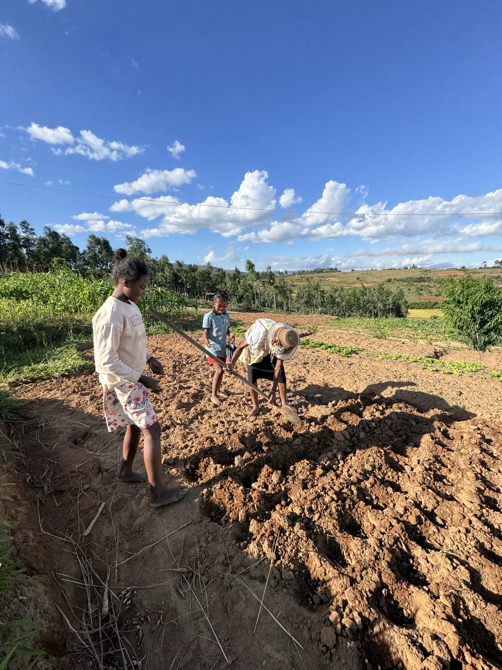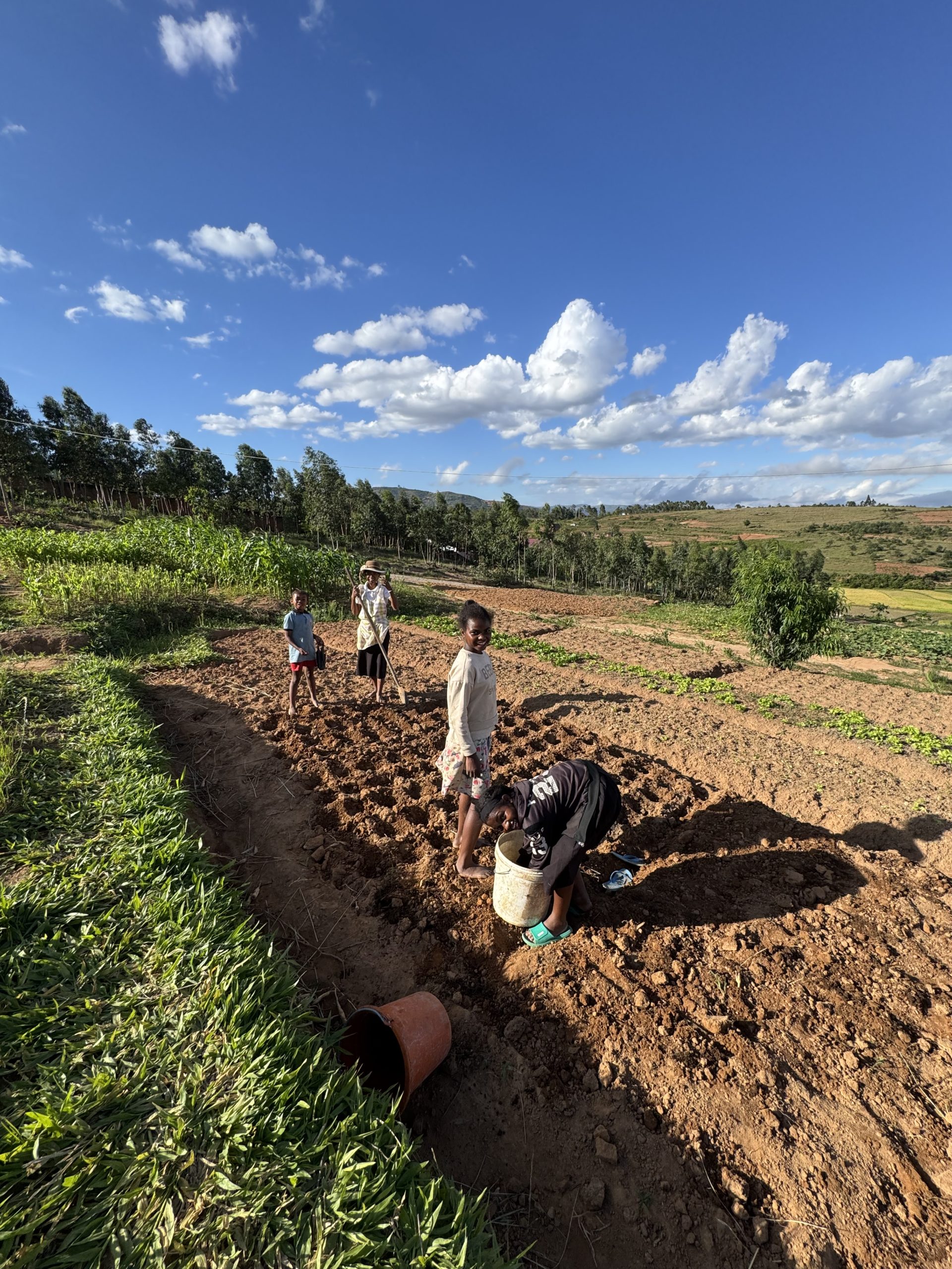 Per raggiungere il secondo obiettivo, quello della autosufficienza alimentare, abbiamo acquistato tre ettari di terreno incolto, confinanti con il villaggio. Qui stiamo mettendo in piedi l’allegra fattoria Gana Gana, che in malgascio vuol dire Anatra. Dopo aver scavato i pozzi, abbiamo iniziato a piantare alberi di mango, papaya, banano e poi avviato tante coltivazioni diverse, anche una piccola risaia. Oltre all’agricoltura c’è poi l’allevamento: galline, maiali, anatre, oche, pesci, zebù e mucche. E per non farci mancare niente, stiamo mettendo su due nuovi progetti: apicultura e vivaio. Insomma, presto produrremo anche il nostro miele e i nostri fiori da vendere al mercato.